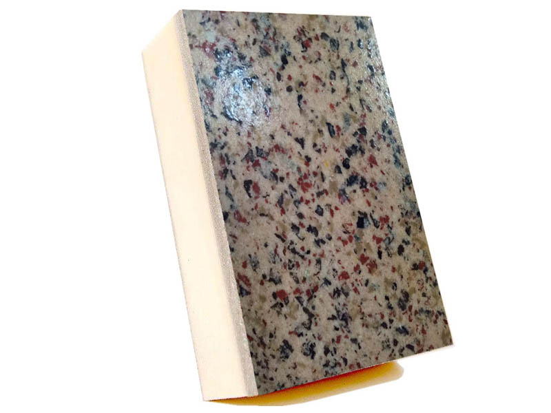 装饰面板的装饰面是仿真天然花岗石材的色彩、花型、图案,使建筑更显庄重、典雅,同批次产品基本无色差。